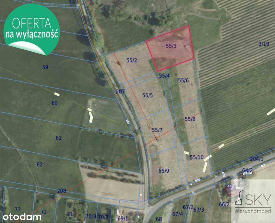 Powierzchnia działki nr 55/3: 3057 m² (cena dotyczy jednej działki)